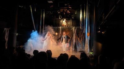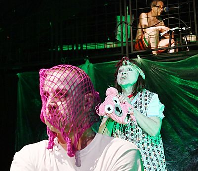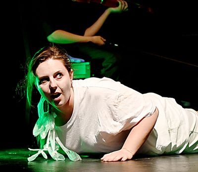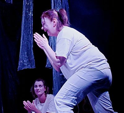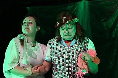 Když jsem inscenaci viděl na Divadelní třísce, nedařilo se mi do ní úplně proniknout, ale něčím mě ten kabaretoidní-freak-bizárek stejně upoutal. Tentokrát se moje vrozená arytmie naladila mnohem lépe. Začala si více všímat posunu významů a trefných divadelně estetických kontrastů. Například když proti vysoké a děsuplné poezii Vodníka postavíte dětskou říkanku Spadla lžička do kafíčka a umně si tak pomůžete k propojení dějových i jiných metahlubin celé záležitosti. Nebo když cestou na hřbitov k umrlci ve Svatebních košilích groteskně hupkáte a recitace se mění v odlehčený popis jedné veskrze vtipné historky.